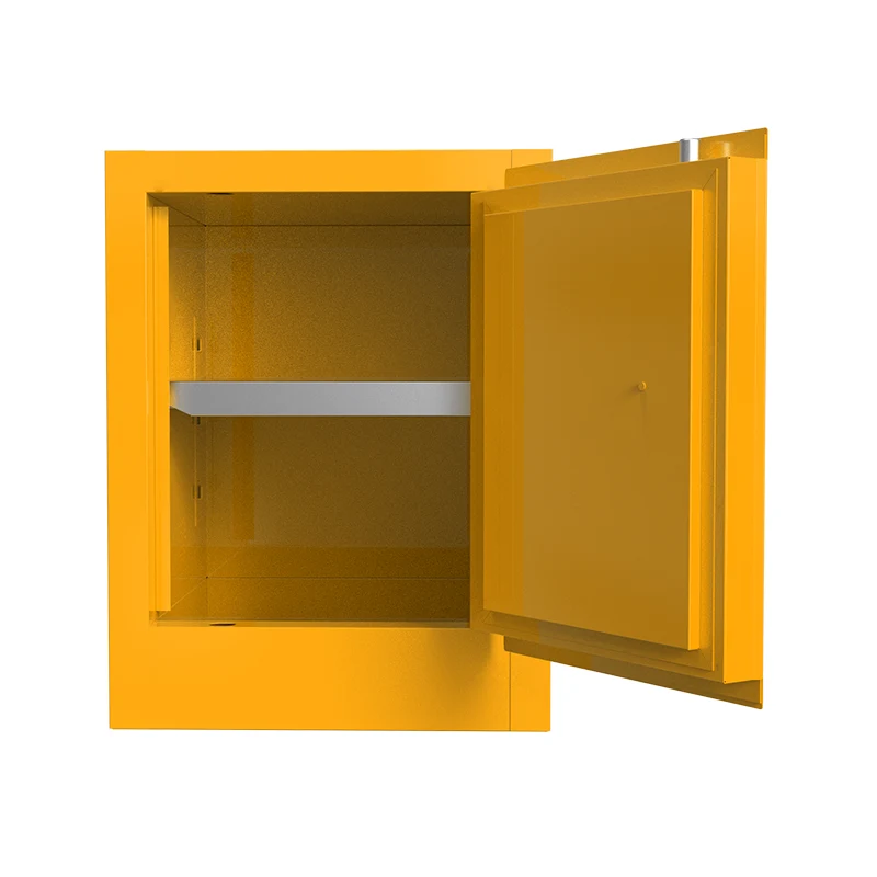 उत्पादनाचे नाव: ज्वलनशील स्टोरेज कॅबिनेट उत्पादन मॉडेल: GS004 बाह्य परिमाण: H560×W430×D430mm अंतर्गत परिमाणे: H460×W350×D330mm शेल्फचे परिमाण: W348×D330×H25mm खंड: 4/15 (गॅलन/लिटर) वजन: 25 किलो दरवाजा उघडण्याची पद्धत: मॅन्युअल/ऑटो शेल्फ् 'चे अव रुप: एक समायोज्य शेल्फ दरवाजा प्रकार: एकल - दरवाजा लॉकिंग डिव्हाइस: डबल लॉक रंग: पिवळा (इपॉक्सी रेझिन स्प्रे - पेंट केलेले) टिप्पण्या: 500 मिली अभिकर्मक बाटल्यांनुसार, प्रत्येक शेल्फवर 9 बाटल्यांसह 2 शेल्फ ठेवता येतात |