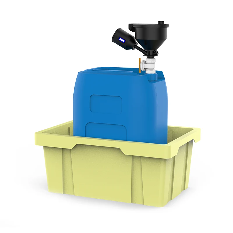 उत्पादन मानक अँटी-लीकेज दुय्यम कंटेनर लीकेज ट्रेसह सुसज्ज आहे आणि व्हॉल्यूम संकलन बॅरलच्या व्हॉल्यूमच्या 10% पेक्षा जास्त आहे. साहित्य पीपी बनलेले आहे.
