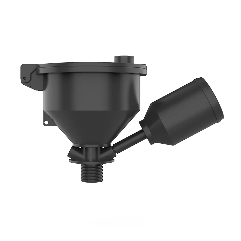 फनेलचा आतील व्यास 130 मिमी आणि बाह्य व्यास 158 मिमी आहे. हे लीक-प्रूफ टॉप कव्हरचे डिझाइन स्वीकारते. कच्चा माल आयात केलेल्या अँटी-स्टॅटिक मटेरियलपासून इंजेक्शन-मोल्ड केलेला असतो, ज्यामध्ये सीलिंग कव्हर आणि स्प्लॅश-प्रूफ फिल्टर फनेल डिझाइन असते. सीलबंद कचरा द्रवाची सुरक्षितता सुनिश्चित करण्यासाठी फनेलच्या खाली एक वाल्व वैकल्पिकरित्या स्थापित केला जाऊ शकतो. शीर्ष कव्हर काउंटरवेट प्रकाराचे आहे. जेव्हा अंतर्गत दाब 100Pa पर्यंत पोहोचतो, तेव्हा स्फोट आणि उत्स्फूर्त ज्वलन टाळण्यासाठी एक्झॉस्ट गॅस डिस्चार्ज करण्यासाठी शीर्ष कव्हर स्वयंचलितपणे उघडेल. जेव्हा दाब 50Pa पेक्षा कमी असेल तेव्हा कव्हर आपोआप बंद होईल.