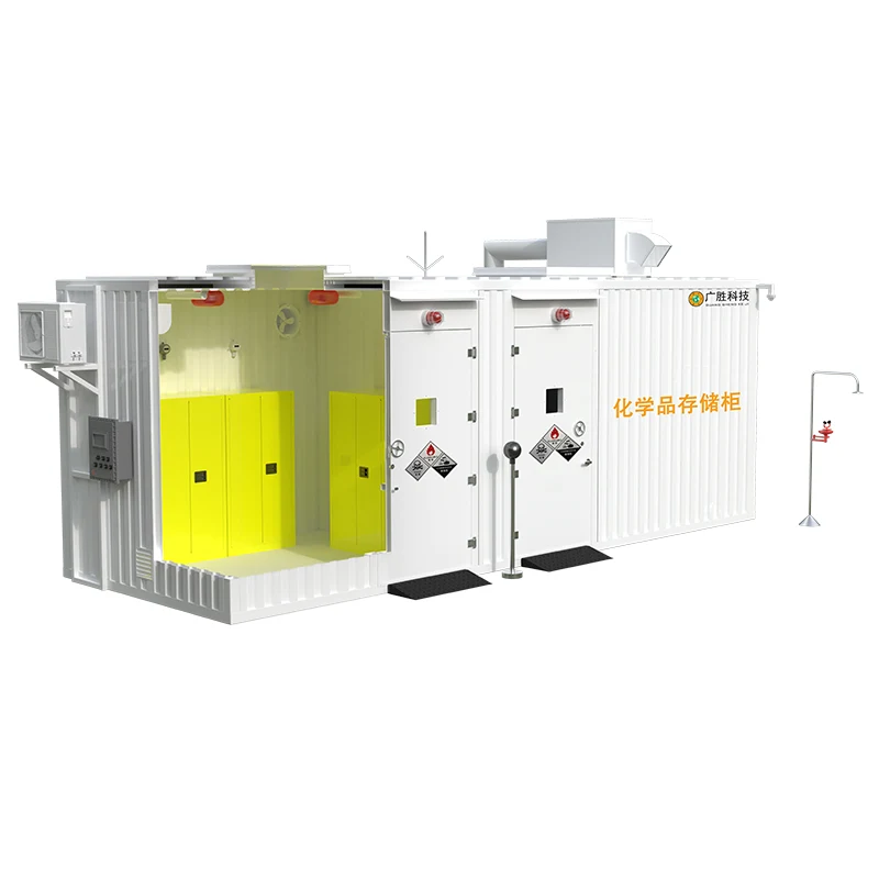 आऊटडोअर टेम्पररी स्टोरेज कॅबिनेटच्या रचनेमध्ये बॉक्स, सॉफ्टवेअर मॅनेजमेंट सिस्टम, IoT क्लाउड मॅनेजमेंट प्लॅटफॉर्म, लाइटनिंग-प्रोटेक्शन आणि अँटी-स्टॅटिक ग्राउंडिंग सिस्टम, हाय-डेफिनिशन एक्स्प्लोजन-प्रूफ मॉनिटरिंग सिस्टम, एक्स्प्लोजन-प्रूफ पॉवर सप्लाय सिस्टम, कॉन्स्टेंट तापमान आणि आर्द्रता सिस्टम, एक्स्प्लोजन-प्रूफ लाइटिंग सिस्टम, ऑटोनॉमस मॉनिटरिंग आणि इंटर्नल स्टोरेज सिस्टम, अँटी-कॉर्पोरेशन सिस्टम, अँटी-कॉर्पोरेशन सिस्टम, ॲन्टी-डेफिनिशन मॅनेजमेंट सिस्टम. प्रणाली, वायुवीजन आणि एक्झॉस्ट सिस्टम, गळती पुनर्प्राप्ती प्रणाली, एक्झॉस्ट गॅस शुद्धीकरण उपचार प्रणाली, वैयक्तिक संरक्षण प्रणाली, साफसफाईची राखीव प्रणाली, स्वयंचलित दबाव आराम प्रणाली, आपत्कालीन शॉवर आणि इतर सिस्टम युनिट्स. वापरकर्ते गुआंगशेंग तंत्रज्ञानाद्वारे प्रदान केलेल्या कॉन्फिगरेशन आवश्यकता सारणीनुसार कार्यात्मक प्रणाली निवडू शकतात.